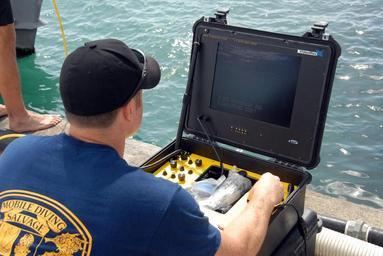 Keywords: US Navy 090812-N-5710P-070 U.S. Navy Diver 2nd Class Tyler Follett tests out the Video Ray, a underwater remote operated vehicle, from the control console.jpg en PORT VICTORIA Aug 12 2009 U S Navy Diver 2nd Class Tyler Follett tests out the Video Ray a underwater remote operated vehicle from the control console during operation Island Response'09 Island Response'09 is a bilateral exercise between the U S Navy and the Seychelles Coast Guard to strengthen military relations and tactical proficiency in anti-terrorism force protection diving operations underwater search techniques dive medicine fundamentals underwater salvage fundamentals diving supervisor training and diving equipment maintenance procedures U S Navy photo by Mass Communication Specialist 1st Class Joseph W Pfaff/Released 2009-08-12 090812-N-5710P-070 Navy http //www navy mil/view_image asp id 75172 U S Navy photo by Mass Communication Specialist 1st Class Joseph W Pfaff PD-USGov-Military-Navy Images from US Navy location PORT VICTORIA Seychelles VideoRay ROV United States Navy Divers T-shirts with texts Men using computers People using computers in the 2000s Blue T-shirts |