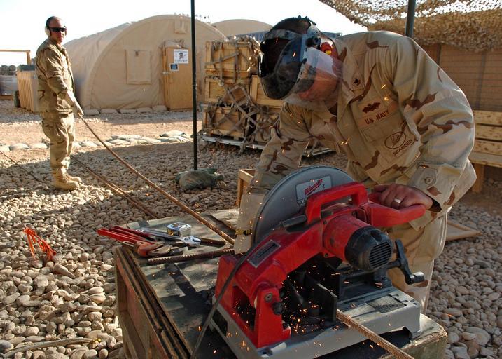 | Keywords: US Navy 090915-N-4440L-055 Builder 2nd Class Justin Pines and Construction Mechanic 2nd Class Charles Barrow cut steel rebar for a construction project.jpg en HELMAND PROVINCE Afghanistan Sept 15 2009 Builder 2nd Class Justin Pines and Construction Mechanic 2nd Class Charles Barrow both assigned to Naval Mobile Construction Battalion NMCB 74 cut steel rebar for a construction project NMCB-74 is deployed to Afghanistan supporting the NATO International Security Assistance Force and U S Forces-Afghanistan U S Navy photo by Mass Communication Specialist 2nd Class Michael Lindsey/Released 2009-09-15 090915-N-4440L-055 Navy http //www navy mil/view_image asp id 77109 U S Navy photo by Mass Communication Specialist 2nd Class Michael Lindsey PD-USGov-Military-Navy Helmand Province in the War in Afghanistan 2001-present Builder United States Navy Construction Mechanic United States Navy Rebar Miter saws |