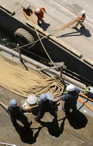 MAKE A MEME View Large Image Navy 090923-N-5345W-033 Deck department Sailors aboard the amphibious dock landing ship USS Fort McHenry (LSD 43) man a mooring line on the foc'sle as local port workers help moor the ship to the pier during a scheduled port.jpg en SALALAH ...