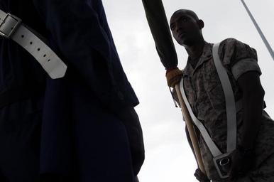 Keywords: US Navy 091009-N-3830J-088 Cpl. Glenn Hughes from Fleet Anti-terrorism Security Team Pacific Company, 5th Platoon practices honor guard routine with Sailors assign to the amphibious command ship USS Blue Ridge (LCC 19).jpg en PACIFIC OCEAN Oct 9 2009 Cpl Glenn Hughes from Fleet Anti-terrorism Security Team Pacific Company 5th Platoon practices honor guard routine with Sailors assign to the amphibious command ship USS Blue Ridge LCC 19 and embarked 7th Fleet Blue Ridge is the flagship for Commander U S 7th Fleet U S Navy photo by Mass Communication Specialist 3rd Class Matthew D Jordan/Released 2009-10-09 091009-N-3830J-088 Navy http //www navy mil/view_image asp id 76996 U S Navy photo by Mass Communication Specialist 3rd Class Matthew D Jordan PD-USGov-Military-Navy Aboard USS Blue Ridge LCC-19 Fleet Antiterrorism Security Team |