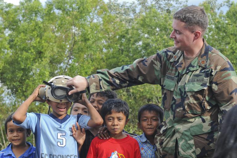 Keywords: US Navy 091011-N-9950J-252 Lt. Cmdr. Benje Stinespring, flag aide to Rear Adm. Richard Landolt, commander, Amphibious Force U.S. 7th Fleet, entertains children from Hula Banda village while delivering ShelterBoxes to earthquake.jpg en PADANG Indonesia Oct 11 2009 Lt Cmdr Benje Stinespring flag aide to Rear Adm Richard Landolt commander Amphibious Force U S 7th Fleet entertains children from Hula Banda village while delivering ShelterBoxes to earthquake victims A Ch-53E Sea Stallion helicopter assigned to Marine Medium Helicopter Squadron HMM-265 delivered 45 ShelterBoxes containing materials to sustain a family of 10 for several weeks Amphibious Force U S 7th Fleet is coordinating U S military assistance to victims of the recent earthquakes in West Sumatra at the request of the Indonesian government U S Navy photo by Mass Communications Specialist 2nd Class Greg Johnson/Released 2009-10-11 091011-N-9950J-252 Navy http //www navy mil/view_image asp id 77078 U S Navy photo by Mass Communications Specialist 2nd Class Greg Johnson PD-USGov-Military-Navy Images from US Navy location Padang Indonesia Military people of the United States with children Children of Indonesia Richard B Landolt ShelterBox |