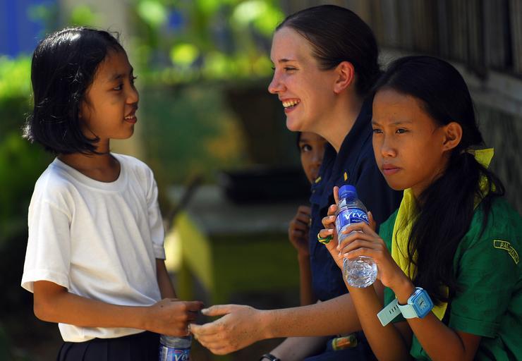 | Keywords: US Navy 091015-N-0807W-397 Ensign Whitney Steiger assigned to the amphibious dock landing ship USS Harpers Ferry (LSD 49), speaks with a student from West Central Elementary School during a community service project.jpg en PALAWAN Philippines Oct 15 2009 Ensign Whitney Steiger assigned to the amphibious dock landing ship USS Harpers Ferry LSD 49 speaks with a student from West Central Elementary School during a community service project Harpers Ferry the amphibious dock landing ship USS Tortuga LSD 46 and the 31st Marine Expeditionary Unit are participating in Amphibious Landing Exercise PHIBLEX an exercise designed to improve interoperability increase readiness and develop professional relationships between the U S military an the Armed Forces of the Philippines U S Navy photo by Mass Communication Specialist 2nd Class Joshua J Wahl/Released 2009-10-15 091015-N-0807W-397 Navy http //www navy mil/view_image asp id 77466 U S Navy photo by Mass Communication Specialist 2nd Class Joshua J Wahl PD-USGov-Military-Navy Images from US Navy location PALAWAN Philippines Aboard USS Harpers Ferry LSD-49 |