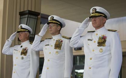 Keywords: US Navy 091019-N-8623G-094 Adm. Robert F. Willard, left, incoming commander of the U.S. Pacific Command, Adm. Mike Mullen, chairman of the Joint Chiefs of Staff and Adm. Timothy J. Keating.jpg en CAMP H M SMITH Hawaii Oct 19 2009 Adm Robert F Willard left incoming commander of the U S Pacific Command Adm Mike Mullen chairman of the Joint Chiefs of Staff and Adm Timothy J Keating outgoing commander of the U S Pacific Command render honors during the singing of the national anthem at a change of command ceremony held at Camp H M Smith Hawaii U S Navy photo by Mass Communications Specialist 2nd Class Elisia V Gonzales/Released 2009-10-19 091019-N-8623G-094 Navy http //www navy mil/view_image asp id 77455 U S Navy photo by Mass Communications Specialist 2nd Class Elisia V Gonzales PD-USGov-Military-Navy Camp H M Smith Aiea Michael G Mullen in 2009 Change of command Robert Willard in 2009 Salutes |