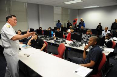 Keywords: US Navy 091026-N-5208T-004 Texas Southern University aviation students listen as Rear Adm. W. Mark Skinner, Program Executive Officer-Tactical Aircraft Programs, discusses the future of naval aviation.jpg en HOUSTON Oct 26 2009 Texas Southern University aviation students listen as Rear Adm W Mark Skinner Program Executive Officer-Tactical Aircraft Programs discusses the future of naval aviation Skinner a native of Houston also participated in a flight simulator with the students in conjunction with Houston Navy Week Navy Weeks are designed to showcase the investment Americans have made in their Navy and increase awareness in metropolitan areas that do not have a significant Navy presence U S Navy photo by Mass Communication Specialist 1st Class Josh Treadwell/Released 2009-10-26 091026-N-5208T-004 Navy http //www navy mil/view_image asp id 77776 U S Navy photo by Mass Communication Specialist 1st Class Josh Treadwell PD-USGov-Military-Navy 2009 in Houston Schools in Houston People using computers in the 2000s Houston Navy Week |