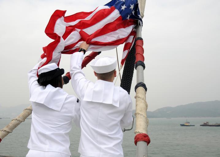 Keywords: US Navy 091103-N-6567V-055 Aviation Boatswain's Mate (Handling) Airman Venus Wooten and Aviation Boatswain's Mate (Handling) Airman Recruit Nicholas Plemmons lower the ensign aboard the aircraft carrier USS George Washington (C.jpg en HONG KONG Nov 3 2009 Aviation Boatswain's Mate Handling Airman Venus Wooten and Aviation Boatswain's Mate Handling Airman Recruit Nicholas Plemmons lower the ensign aboard the aircraft carrier USS George Washington CVN 73 as the ship gets underway in Kowloon Bay following its first port visit to Hong Kong George Washington the Navy's only permanently forward-deployed aircraft carrier is underway supporting security and stability in the western Pacific Ocean U S Navy photo Mass Communication Specialist Seaman Apprentice Marcos Vazquez/Released 2009-11-03 091103-N-6567V-055 Navy http //www navy mil/view_image asp id 78046 U S Navy photo Mass Communication Specialist Seaman Apprentice Marcos Vazquez PD-USGov-Military-Navy Aviation Boatswain's Mates Images from US Navy location Hong Kong Aboard USS George Washington CVN-73 |