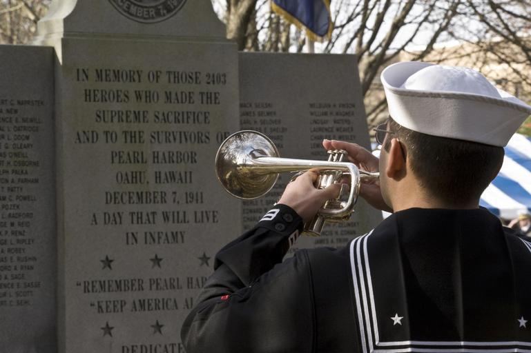 Keywords: US Navy 091207-N-7874H-146 A bugler plays taps during a Pearl Harbor remembrance ceremony at Joint Expeditionary Base Little Creek-Fort Story.jpg en NORFOLK Dec 7 2009 A bugler plays taps during a Pearl Harbor remembrance ceremony at Joint Expeditionary Base Little Creek-Fort Story U S Navy photo by Robin Hicks/Released 2009-12-07 091207-N-7874H-146 Navy http //www navy mil/view_image asp id 79246 U S Navy photo by Robin Hicks PD-USGov-Military-Navy Naval Amphibious Base Little Creek Taps bugle call 68th anniversary of Pearl Harbor attack |