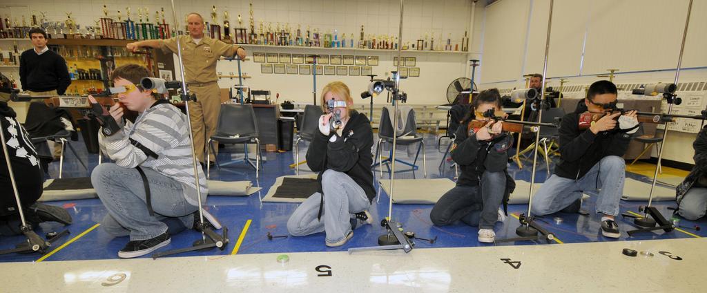 Keywords: US Navy 100121-N-8848T-640 Navy Junior ROTC cadets from Zion-Benton High School practice shooting at the school's air rifle range.jpg en ZION Ill Jan 23 2010 Navy Junior ROTC cadets from Zion-Benton High School practice shooting at the school's air rifle range In 2009 the team won first place at the Junior Olympics took first at the U S Army Nationals came in third at the U S Navy Nationals and is presently ranked No 1 heading into this year's Navy Nationals in March U S Navy photo by Scott A Thornbloom/Released 2010-01-23 100121-N-8848T-640 Navy http //www navy mil/view_image asp id 80994 U S Navy photo by Scott A Thornbloom PD-USGov-Military-Navy Images from US Navy location ZION Ill |