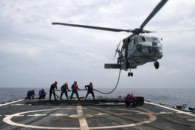 Keywords: US Navy 100122-N-6044L-003 Sailors assigned to the guided-missile frigate USS McClusky (FFG 41) conduct helicopter in-flight refueling training.jpg en EASTERN PACIFIC Jan 22 2010 Sailors assigned to the guided-missile frigate USS McClusky FFG 41 conduct helicopter in-flight refueling training with an SH-60B Sea Hawk helicopter assigned to the Wolfpack of Helicopter Anti-Submarine Squadron Light HSL 45 McClusky and HSL-45 Detachment 3 are conducting counter-illicit trafficking missions in the U S 4th Fleet area of responsibility U S Navy photo by Lt Austin Long/Released 2010-01-22 100122-N-6044L-003 Navy http //www navy mil/view_image asp id 80707 U S Navy photo by Lt Austin Long PD-USGov-Military-Navy USS McClusky FFG-41 |
