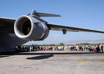 | Keywords: US Navy 100123-N-6247V-122 Haitian-Americans prepare to board a U.S. Air Force C-17 Globemaster III transport aircraft destined for the United States.jpg en PORT-AU-PRINCE Haiti Jan 23 2010 Haitian-Americans prepare to board a U S Air Force C-17 Globemaster III transport aircraft destined for the United States while evacuating from Port-au-Prince Haiti Several U S and international military units and civilian aid agencies are supporting Operation Unified Response after a 7 0 magnitude earthquake caused severe damage near Port-au-Prince Jan 12 U S Navy photo by Mass Communication Specialist 2nd Class Candice Villarreal/Released 2010-01-23 100123-N-6247V-122 Navy http //www navy mil/view_image asp id 80615 U S Navy photo by Mass Communication Specialist 2nd Class Candice Villarreal PD-USGov-Military-Navy 2010 in Toussaint Louverture International Airport 20100123 January 2010 in Port-au-Prince 23 2010 Haiti earthquake relief efforts in Port-au-Prince Aircraft at Toussaint Louverture International Airport |