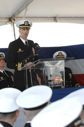 Keywords: US Navy 100123-N-6536T-429 Cmdr. Steven Harrison addresses spectators and current and former Los Angeles crew members during the boat's decommissioning ceremony.jpg en LOS ANGELES Jan 23 2010 Cmdr Steven Harrison commanding officer of the fast-attack submarine USS Los Angeles SSN 688 addresses spectators and current and former Los Angeles crew members during the boat's decommissioning ceremony at the Port of Los Angeles Los Angeles will transit to Puget Sound Naval Shipyard in Bremerton Wash to begin the inactivation process U S Navy photo by Mass Communication 1st Class Elizabeth Thompson/Released 2010-01-23 100123-N-6536T-429 Navy http //www navy mil/view_image asp id 80586 U S Navy photo by Mass Communication 1st Class Elizabeth Thompson PD-USGov-Military-Navy USS Los Angeles SSN-688 |