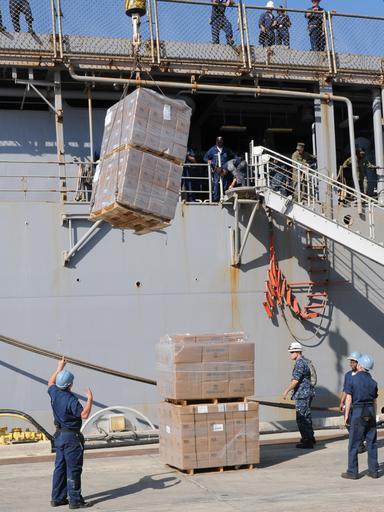 | Keywords: US Navy 100124-N-5688F-014 Sailors load pallets of humanitarian supplies aboard the amphibious dock landing ship USS Carter Hall (LSD 50) at U.S. Naval Station Guantanamo Bay, Cuba.jpg en GUANTANAMO BAY Cuba Jan 24 2010 Sailors load pallets of humanitarian supplies aboard the amphibious dock landing ship USS Carter Hall LSD 50 at U S Naval Station Guantanamo Bay Cuba Carter Hall is transporting U S Marines and supplies from Combat Logistics Battalion CLB 22 to support Operation Unified Response a multi-national humanitarian and disaster relief operation following a 7 0 magnitude earthquake in Haiti Jan 12 U S Navy photo by Mass Communication Specialist 2nd Class Edward Flynn/Released 2010-01-24 100124-N-5688F-014 Navy http //www navy mil/view_image asp id 80796 U S Navy photo by Mass Communication Specialist 2nd Class Edward Flynn PD-USGov-Military-Navy Aboard USS Carter Hall LSD-50 |