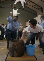 Keywords: US Navy 100129-N-5253W-003 Fleet Activities Yokosuka celebrates the new year.jpg en YOKOSUKA Japan Jan 29 2010 Operations Specialist 2nd Class Tyrone Hill from Atlanta pounds mochi during Fleet Activities Yokosuka's New Year's mochi pounding celebration The event commemorated the 50th anniversary the U S Japan strategic alliance Mochi a paste used in many Japanese foods is traditionally made by beating specially-prepared rice with a mallet and mortar U S Navy photo by Mass Communication Specialist 2nd Class Gabriel S Weber/Released 2010-01-29 100129-N-5253W-003 Navy http //www navy mil/view_image asp id 81210 U S Navy photo by Mass Communication Specialist 2nd Class Gabriel S Weber PD-USGov-Military-Navy United States Fleet Activities Yokosuka Mochi pounding