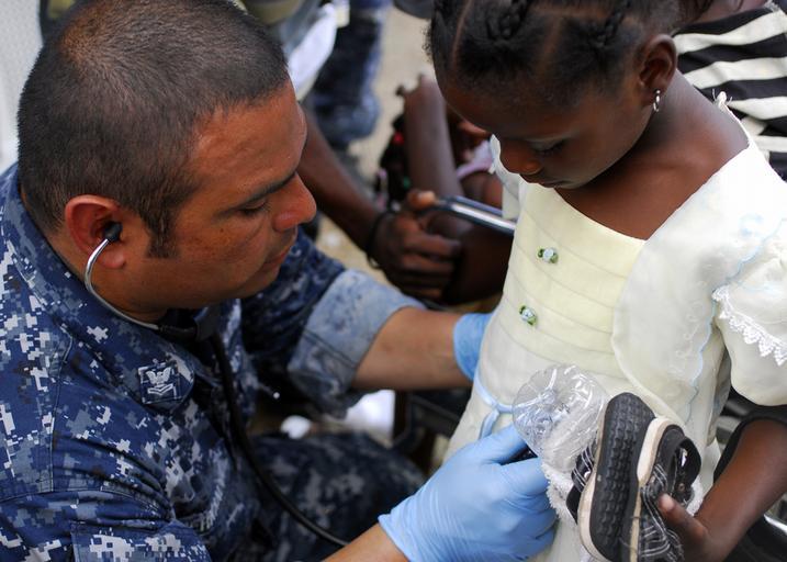 | Keywords: US Navy 100201-N-5244H-068 Hospital Corpsman 2nd Class Sergio Hernandez examines a Haitian girl complaining of stomach pain at a medical clinic.jpg en LEOGANE Haiti Feb 1 2010 Hospital Corpsman 2nd Class Sergio Hernandez examines a Haitian girl complaining of stomach pain at a medical clinic set up by the amphibious dock-landing ship USS Carter Hall LSD 50 medical department Carter Hall is conducting humanitarian and disaster relief operations as part of Operation Unified Response after a 7 0 magnitude earthquake caused severe damage in and around Port-au-Prince Haiti Jan 12 U S Navy photo by Mass Communication Specialist 1st Class Monique Hilley/Released 2010-02-01 100201-N-5244H-068 Navy http //www navy mil/view_image asp id 81367 U S Navy photo by Mass Communication Specialist 1st Class Monique Hilley PD-USGov-Military-Navy Aboard USS Carter Hall LSD-50 Hospital Corpsman Complaining |