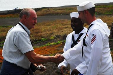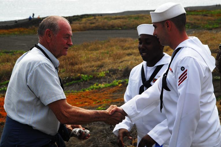 Keywords: US Navy 100303-N-7843A-194 Sailors assigned to the amphibious dock landing ship USS Tortuga (LSD 49) talk with a veteran of the battle of Iwo Jima on the island of Iwo To, Japan.jpg en IWO TO Japan March 3 2010 Sailors assigned to the amphibious dock landing ship USS Tortuga LSD 49 talk with a veteran of the battle of Iwo Jima on the island of Iwo To Japan formerly known as Iwo Jima Military personnel and World War II veterans are commemorating the 65th anniversary of the Battle of Iwo Jima Tortuga arrived off the coast of Iwo To on Feb 28 to support the ceremony U S Navy photo by Lt Cmdr Denver Applehans/Released 2010-03-03 100303-N-7843A-194 Navy http //www navy mil/view_image asp id 82818 U S Navy photo by Lt Cmdr Denver Applehans PD-USGov-Military-Navy Aboard USS Tortuga LSD-46 Images from US Navy location Iwo Jima Japan |