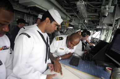 Keywords: US Navy 100313-N-8335D-010 Lt. Cmdr. Patrick German, right, and Quartermaster 2nd Class David Mora plot the ship's position.jpg en CHITTAGONG Bangladesh March 13 2010 Lt Cmdr Patrick German right executive officer of the mine countermeasures ship USS Patriot MCM 7 and Quartermaster 2nd Class David Mora plot the ship's position on a chart as Patriot arrives in Chittagong Bangladesh for a port visit U S Navy photo by Mass Communication Specialist 1st Class Richard Doolin/Released 2010-03-13 100313-N-8335D-010 Navy http //www navy mil/view_image asp id 83175 U S Navy photo by Mass Communication Specialist 1st Class Richard Doolin PD-USGov-Military-Navy USS Patriot MCM-7 |