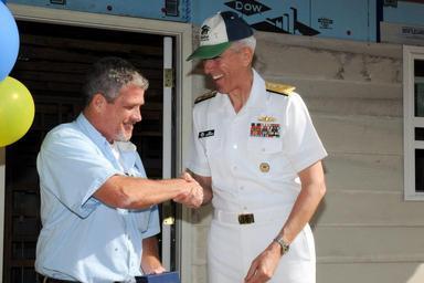 Keywords: US Navy 100318-N-8190H-058 Vice Adm. Samuel Locklear III, director of Navy staff, shakes hands with Ralph Jackson, affiliate CEO for Habitat for Humanity Hillsborough County, after being presented with a ball cap.jpg en TAMPA Fla March 18 2010 Vice Adm Samuel Locklear III director of Navy staff shakes hands with Ralph Jackson affiliate CEO for Habitat for Humanity Hillsborough County after being presented with a ball cap Sailors volunteered to build a new home for a Habitat for Humanity project during Tampa Bay Navy Week Navy Weeks are designed to show Americans the investment they have made in their Navy and increase awareness in cities that do not have a significant Navy presence U S Navy photo by Mass Communication Specialist 1st Class Christine Hannon/Released 2010-03-18 100318-N-8190H-058 Navy http //www navy mil/view_image asp id 83402 U S Navy photo by Mass Communication Specialist 1st Class Christine Hannon PD-USGov-Military-Navy Images from US Navy location TAMPA Fla Samuel J Locklear Handshakes involving the military Tampa Bay Navy Week |
