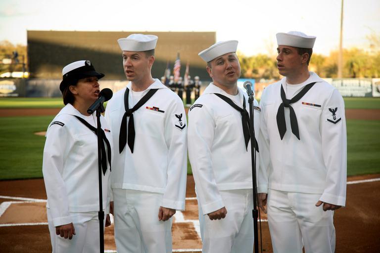 Keywords: US Navy 100318-N-3271W-181 Members of the U.S. Navy Band, Pride, sing the national anthem before a pre-season game with the Tampa Bay Rays and New York Yankees.jpg en TAMPA Fla March 18 2010 Members of the U S Navy Band Southeast contemporary ensemble Pride sing the national anthem before a pre-season game with the Tampa Bay Rays and New York Yankees at Steinbrenner Field The band is taking part in events during Tampa Bay Navy Week the first of 20 Navy Weeks planned across America in 2010 Navy Weeks are designed to show Americans the investment they have made in their Navy and increase awareness in cities that do not have a significant Navy presence U S Navy photo by Senior Chief Mass Communication Specialist Gary Ward/Released 2010-03-18 100318-N-3271W-181 Navy http //www navy mil/view_image asp id 83345 U S Navy photo by Senior Chief Mass Communication Specialist Gary Ward PD-USGov-Military-Navy Images from US Navy location TAMPA Fla Tampa Bay Navy Week |