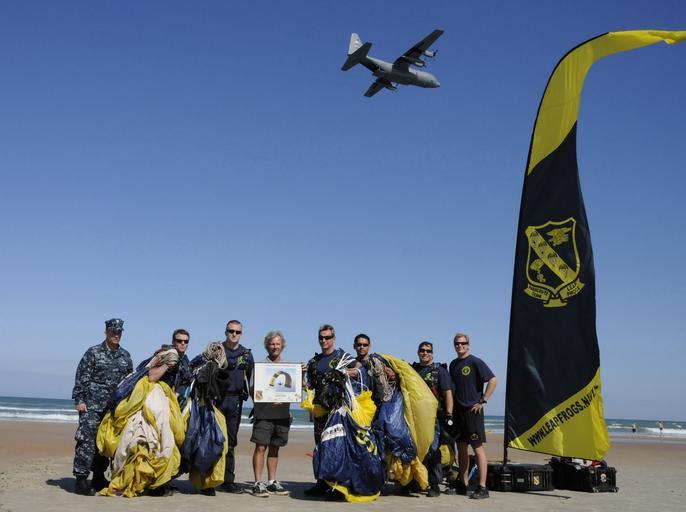 Keywords: US Navy 100320-N-5366K-103 The Leap Frogs present a signed lithograph to Rob Wallace of the Naval Special Warfare Foundation after the team performed during the kick-off event for the 2010 Daytona Frogman Triathlon.jpg en DAYTONA Fla March 20 2010 Members of the U S Navy demonstration parachute team the Leap Frogs present a signed lithograph to Rob Wallace of the Naval Special Warfare Foundation after the team performed during the kick-off event for the 2010 Daytona Frogman Triathlon at Daytona Beach Fla The Leap Frogs are based in San Diego and perform parachute demonstrations throughout the United States U S Navy photo by Mass Communication Specialist 2nd Class Michelle Kapica/Released 2010-03-20 100320-N-5366K-103 Navy http //www navy mil/view_image asp id 83482 U S Navy photo by Mass Communication Specialist 2nd Class Michelle Kapica PD-USGov-Military-Navy Images from US Navy location Daytona Fla United States Navy Parachute Team |