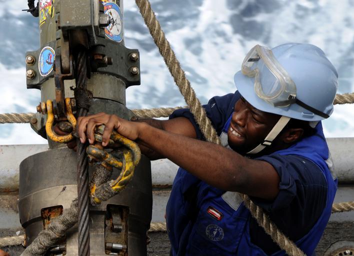 | Keywords: US Navy 100324-N-7948C-235 Aviation Ordnanceman Airman Raymond Thomas unhooks a span line from a re-fueling hose during an underway replenishment.jpg en GULF OF GUINEA March 24 2010 Aviation Ordnanceman Airman Raymond Thomas from Bennettsville S C assigned to the Whidbey Island-class amphibious dock-landing ship USS Gunston Hall LSD 44 unhooks a span line from a re-fueling hose during an underway replenishment Gunston Hall is deployed as part of Africa Partnership Station West an international initiative developed by Naval Forces Europe and Naval Forces Africa to improve maritime safety and security on the African continent U S Navy photo by Mass Communication Specialist 1st Class Martine Cuaron/Released 2010-03-24 100324-N-7948C-235 Navy http //www navy mil/view_image asp id 83634 U S Navy photo by Mass Communication Specialist 1st Class Martine Cuaron PD-USGov-Military-Navy Aboard USS Gunston Hall LSD-44 Aviation Ordnanceman Africa Partnership Station 2010 |