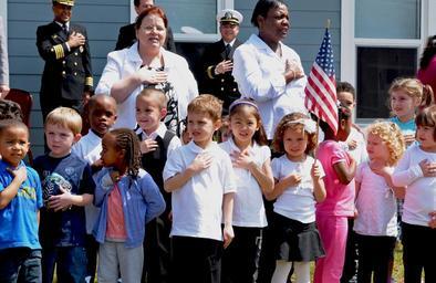 Keywords: US Navy 100405-N-1831S-045 hildren enrolled in the Joint Expeditionary Base Little Creek - Fort Story Child Development Center Pre-School sing the National Anthem during a ribbon cutting ceremony for the 24-7 Child and Youth Ce.jpg en VIRGINIA BEACH Va April 5 2010 Children enrolled in the Joint Expeditionary Base Little Creek - Fort Story Child Development Center Pre-School sing the National Anthem during a ribbon cutting ceremony for the 24/7 Child and Youth Center The center provides childcare to single and dual military shift working parents and those working extended hours U S Navy photo by Mass Communication Specialist 3rd Class Ash Severe/Released 2010-04-05 100405-N-1831S-045 Navy http //www navy mil/view_image asp id 84038 U S Navy photo by Mass Communication Specialist 3rd Class Ash Severe PD-USGov-Military-Navy Naval Amphibious Base Little Creek Hand over heart |