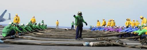 Keywords: US Navy 100406-N-8913A-013 Aviation Boatswain's Mate (Equipment) 2nd Class Bennie L. Clark directs Sailors during a barricade drill.jpg en ATLANTIC OCEAN April 6 2010 Aviation Boatswain's Mate Equipment 2nd Class Bennie L Clark assigned to the air department aboard the aircraft carrier USS George H W Bush CVN 77 directs Sailors during a barricade drill George H W Bush is conducting training in the Atlantic Ocean U S Navy photo by Mass Communication Specialist Seaman Apprentice Leonard Adams/Released 2010-04-06 100406-N-8913A-013 Navy http //www navy mil/view_image asp id 84075 U S Navy photo by Mass Communication Specialist Seaman Apprentice Leonard Adams PD-USGov-Military-Navy Aboard USS George H W Bush CVN-77 Barricades aircraft carrier |
