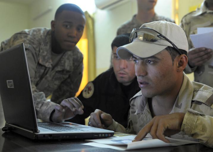 | Keywords: US Navy 100427-N-8158F-104 U.S. service members assist Iraqi Special Operations Force soldiers during a video editing training course.jpg en MOSUL Iraq April 27 2010 U S service members assist Iraqi Special Operations Force soldiers during a video editing training course The four-day course teaches the fundamentals of capturing editing and publishing video products to enhance and develop multi-media and public affairs capabilities U S Navy photo by Mass Communication Specialist 2nd Class Roland A Franklin/Released 2010-04-27 100427-N-8158F-104 Navy http //www navy mil/view_image asp id 85436 U S Navy photo by Mass Communication Specialist 2nd Class Roland A Franklin PD-USGov-Military-Navy Images from US Navy location Mosul Iraq |