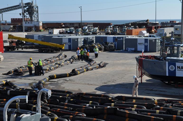 | Keywords: US Navy 100505-N-6141B-001 Personnel contracted by the Supervisor of Salvage and Diving division of Naval Sea Systems Command prepare inflatable oil booms.jpg en GULFPORT Miss May 5 2010 Personnel contracted by the Supervisor of Salvage and Diving division of Naval Sea Systems Command prepare inflatable oil booms for rigging and deployment to support recovery efforts from the Deepwater Horizon oil spill Deepwater Horizon was an ultra-deepwater oil rig that sank April 22 causing a massive oil spill threatening the U S Gulf Coast U S Navy photo by Alan Baribeau/Released 2010-05-05 100505-N-6141B-001 Navy http //www navy mil/view_image asp id 85383 U S Navy photo by Alan Baribeau PD-USGov-Military-Navy Images from US Navy location Gulfport Miss Deepwater Horizon oil spill |