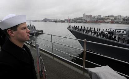 Keywords: US Navy 100507-N-7280V-191 Damage Controlman 3rd Class Shane Johnston mans the rails aboard the U.S. 7th Fleet command ship USS Blue Ridge (LCC 19) as the ship pulls into Vladivostok, Russia.jpg en VLADIVOSTOK Russia May 7 2010 Damage Controlman 3rd Class Shane Johnston mans the rails aboard the U S 7th Fleet command ship USS Blue Ridge LCC 19 as the ship pulls into Vladivostok Russia Blue Ridge Sailors will be engaged in a number of community outreach events in Vladivostok and will march with members of the Russian military during a parade to commemorate the 65th anniversary of Victory Day a national holiday in Russia U S Navy photo by Mass Communication Specialist 3rd Class Daniel Viramontes/Released 2010-05-07 100507-N-7280V-191 Navy http //www navy mil/view_image asp id 85143 U S Navy photo by Mass Communication Specialist 3rd Class Daniel Viramontes PD-USGov-Military-Navy Aboard USS Blue Ridge LCC-19 Manning the rail in the United States Navy |