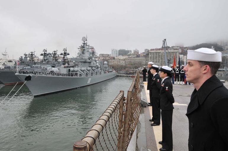 Keywords: US Navy 100507-N-8721D-071 ailors man the rails as the U.S. 7th Fleet flagship USS Blue Ridge (LCC 19) arrives in Vladivostok.jpg en VLADIVOSTOK Russia May 7 2010 Sailors man the rails as the U S 7th Fleet flagship USS Blue Ridge LCC 19 arrives in Vladivostok This year marks the 65th anniversary of the end of World War II Blue Ridge Sailors will be engaged in a number of community outreach events in Vladivostok and will march with members of the Russian military during a parade to commemorate the 65th anniversary of Victory Day a national holiday in Russia U S Navy photo by Mass Communication Specialist 3rd Class Devon Dow/Released 2010-05-07 100507-N-8721D-071 Navy http //www navy mil/view_image asp id 85146 U S Navy photo by Mass Communication Specialist 3rd Class Devon Dow PD-USGov-Military-Navy General views of USS Blue Ridge LCC-19 Manning the rail in the United States Navy |