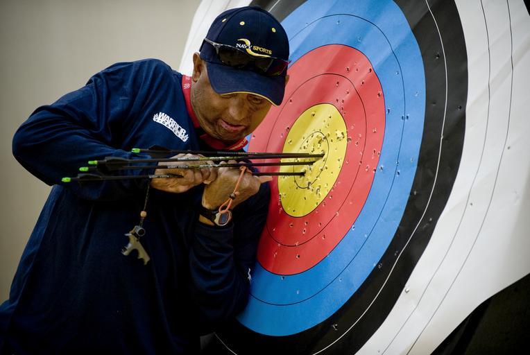 | Keywords: US Navy 100511-N-6932B-157 Chief Electricians Mate Peter Allen Johns retrieves his arrows while practicing for the archery competition at the inaugural Warrior Games in Colorado Springs, Colo.jpg en COLORADO SPRINGS Colo May 11 2010 Chief Electricians Mate Peter Allen Johns retrieves his arrows while practicing for the archery competition at the inaugural Warrior Games in Colorado Springs Colo Johns is one of nearly 200 wounded ill or injured personnel from all service branches participating in the Warrior Games The athletes will compete against one another in archery cycling track and field swimming shooting sitting volleyball and wheelchair basketball U S Navy photo by Mass Communication Specialist 1st Class R Jason Brunson/Released 2010-05-11 100511-N-6932B-157 Navy http //www navy mil/view_image asp id 85309 U S Navy photo by Mass Communication Specialist 1st Class R Jason Brunson PD-USGov-Military-Navy Images from US Navy location COLORADO SPRINGS Colo Archery at the 2010 Warrior Games Archery targets |
