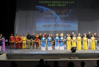 Keywords: US Navy 100605-N-6410J-029 U.S. Pacific Fleet Band members and Vietnamese performing artists are introduced to audience members during a concert at the Quang Trung Hall.jpg en QUY NHON Vietnam June 5 2010 U S Pacific Fleet Band members and Vietnamese performing artists are introduced to audience members during a concert at the Quang Trung Hall supporting Pacific Partnership 2010 The Military Sealift Command hospital ship USNS Mercy T-AH 19 is in Vietnam conducting the fifth in a series of annual U S Pacific Fleet humanitarian and civic assistance endeavors to strengthen regional partnerships U S Navy photo by Mass Communication Specialist 3rd Class Matthew Jackson/Released 2010-06-05 100605-N-6410J-029 Navy http //www navy mil/view_image asp id 86587 U S Navy photo by Mass Communication Specialist 3rd Class Matthew Jackson PD-USGov-Military-Navy Aboard USNS Mercy T-AH-19 |