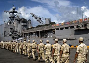 Keywords: US Navy 100607-N-6770T-001 Royal Cambodian Marines embark aboard the amphibious dock landing ship USS Tortuga (LSD 46).jpg en SIHANOUKVILLE Cambodia June 7 2010 Royal Cambodian Marines embark aboard the amphibious dock landing ship USS Tortuga LSD 46 to attend opening ceremonies for the first of two Cambodian phases of Cooperation Afloat Readiness and Training CARAT 2010 CARAT is a series of bilateral exercises held annually in Southeast Asia to strengthen relationships and enhance force readiness U S Navy photo by Mass Communication Specialist 2nd Class Jason Tross/Released 2010-06-07 100607-N-6770T-001 Navy http //www navy mil/view_image asp id 86690 U S Navy photo by Mass Communication Specialist 2nd Class Jason Tross PD-USGov-Military-Navy Aboard USS Tortuga LSD-46 Cooperation Afloat Readiness and Training 2010 Military people of Cambodia |
