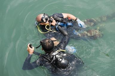 | Keywords: US Navy 100706-N-1134L-069 Navy Diver 2nd Class Jason Hatch, assigned to Company 2-6 of Mobile Diving and Salvage Unit (MDSU) 2, participates in a diving casualty drill with a Mexican navy Diver.jpg en VERACRUZ Mexico July 6 2010 Navy Diver 2nd Class Jason Hatch assigned to Company 2-6 of Mobile Diving and Salvage Unit MDSU 2 participates in a diving casualty drill with a Mexican navy Diver during a joint training mission in Veracruz Mexico MDSU-2 is participating in Navy Diver-Southern Partnership Station a multinational partnership engagement designed to increase interoperability and partner nation capacity through diving operations U S Navy photo by Mass Communication Specialist 2nd Class Chris Lussier/Released 2010-07-06 100706-N-1134L-069 Navy http //www navy mil/view_image asp id 88199 U S Navy photo by Mass Communication Specialist 2nd Class Chris Lussier PD-USGov-Military-Navy Images from US Navy location VERACRUZ Mexico United States Navy Divers |