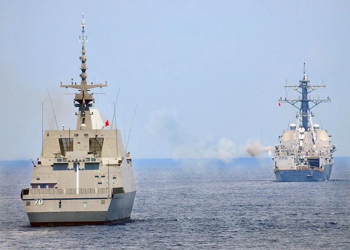 | Keywords: US Navy 100713-N-7643B-075 USS Chung-Hoon participates in surface gunnery exercise.jpg en SOUTH CHINA SEA July 13 2010 The guided-missile destroyer USS Chung-Hoon DDG 93 fires its five-inch MK-45 gun while in formation in front of Republic of Singapore Steadfast FFG 70 during a surface gunnery exercise with the Singaporean Navy as part of Cooperation Afloat Readiness and Training CARAT Singapore 2010 CARAT is a series of bilateral exercises held annually in Southeast Asia to strengthen relationships and enhance force readiness U S Navy photo by Mass Communication Specialist 2nd Class David A Brandenburg/Released 2010-07-13 100713-N-7643B-075 Navy http //www navy mil/view_image asp id 88649 U S Navy photo by Mass Communication Specialist 2nd Class David A Brandenburg PD-USGov-Military-Navy USS Chung-Hoon DDG-93 Cooperation Afloat Readiness and Training 2010 |