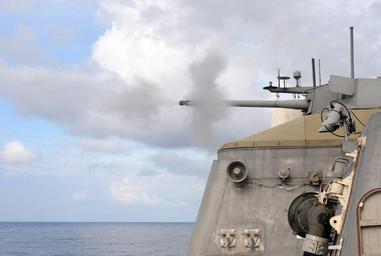Keywords: US Navy 100721-N-7058E-835 The littoral combat ship USS Freedom (LCS 1) fires one of its Mk-46 30mm chain guns during a live-fire exercise off the coast of Kauai, Hawaii.jpg en PACIFIC OCEAN July 21 2010 The littoral combat ship USS Freedom LCS 1 fires one of its Mk-46 30mm chain guns during a live-fire exercise off the coast of Kauai Hawaii Freedom is participating in Rim of the Pacific RIMPAC 2010 the world's largest international maritime exercise U S Navy photo by Lt Ed Early/Released 2010-07-21 100721-N-7058E-835 Navy http //www navy mil/view_image asp id 89343 U S Navy photo by Lt Ed Early PD-USGov-Military-Navy Aboard USS Freedom LCS-1 Mk44 Bushmaster II autocannon Firing artillery |