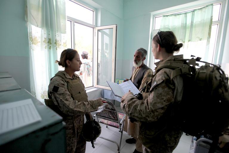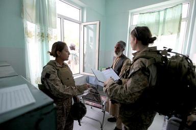 | Keywords: US Navy 100803-M-0301S-030 Hospital Corpsman 2nd Class Claire E. Ballante, right, assigned to the Female Engagement Team (FET), tours a free health clinic while patrolling.jpg en HELMAND Afghanistan Aug 3 2010 Hospital Corpsman 2nd Class Claire E Ballante right assigned to the Female Engagement Team FET tours a free health clinic while patroling with 1st Battalion 2d Marines in Musa Qa'leh Afghanistan Ballante spoke with Afghan volunteer employees to asses the overall condition of the facility in order to provide assistance U S Marine Corps photo by Cpl Lindsay L Sayres/Released 2010-08-03 100803-M-0301S-030 Navy http //www navy mil/view_image asp id 90113 U S Marine Corps photo by Cpl Lindsay L Sayres PD-USGov-Military-Navy War in Afghanistan in 2010 2010 photographs August 2010 in Afghanistan Bulletproof vests Claire E Ballante Combat medics Female Engagement Teams Hospital Corpsman Images from US Navy location Helmand Province Afghanistan MARPAT in 2010 Men and women Mouths open Military people in 2010 United States Navy corpsmen in the War in Afghanistan 2001-present Military people on duty Women in the United States Navy Profile views of females Standing females Females in rooms Women with sunglasses Musa Qala District Open windows |