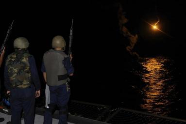 | Keywords: US Navy 100811-N-7280V-102 Sailors watch as a parachute flare descends into the ocean during 40mm grenade launcher training aboard the U.S. 7th Fleet command ship USS Blue Ridge (LCC 19).jpg en PACIFIC OCEAN Aug 11 2010 Sailors watch as a parachute flare descends into the ocean during 40mm grenade launcher training aboard the U S 7th Fleet command ship USS Blue Ridge LCC 19 Parachute flares are used to identify small boats and for navigating through straits during darkness U S Navy photo by Mass Communication Specialist 2nd Class Daniel Viramontes/Released 2010-08-11 100811-N-7280V-102 Navy http //www navy mil/view_image asp id 90284 U S Navy photo by Mass Communication Specialist 2nd Class Daniel Viramontes PD-USGov-Military-Navy Aboard USS Blue Ridge LCC-19 |