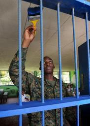 Keywords: US Navy 100825-N-4153W-497 Lance Cpl. Joseph Robertson paints the bars on the window of a local school during a community service event.jpg en LIMON Costa Rica Aug 25 2010 Lance Cpl Joseph Robertson assigned to the Marine Logistics Command Element embarked aboard the multi-purpose amphibious assault ship USS Iwo Jima LHD 7 paints the bars on the window of a local school during a Continuing Promise 2010 community service event The assigned medical and engineering staff embarked aboard Iwo Jima are working with partner nation teams to provide medical dental veterinary and engineering assistance in eight nations U S Navy photo by Mass Communication Specialist 2nd Class Bryan Weyers/Released 2010-08-25 100825-N-4153W-497 Navy http //www navy mil/view_image asp id 90893 U S Navy photo by Mass Communication Specialist 2nd Class Bryan Weyers PD-USGov-Military-Navy Aboard USS Iwo Jima LHD-7 |
