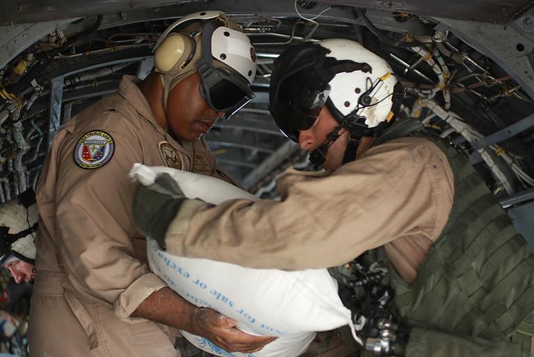 | Keywords: US Navy 100904-M-3497D-990 Rear Adm. Sinclair Harris with a sack of food during a humanitarian supply mission.jpg en PANO AQUIL Sept 4 2010 Rear Adm Sinclair Harris commander of Expeditionary Strike Group 5 helps a Marine aboard a CH-46E Sea Knight helicopter assigned to the White Knights of Marine Medium Helicopter Squadron HMM-165 Reinforced with a sack of food during a humanitarian supply mission The squadron is embarked aboard the U S Navy amphibious assault ship USS Peleliu LHA 5 Peleliu and embarked U S Navy and Marine Corps units are conducting humanitarian assistance missions in flooded areas of Pakistan U S Marine Corps photo by Capt Paul Duncan/Released from HMM-165 Reinforced 15th Marine Expeditionary Unit unload relief supplies from a Sea Knight CH-46E helicopter during humanitarian assistance efforts in the southern Pakistan region U S Marine Corps photo by Capt Paul Duncan/Released 2010-09-04 100904-M-3497D-990 Navy http //www navy mil/view_image asp id 91284 U S Marine Corps photo by Capt Paul Duncan PD-USGov-Military-Navy Aboard USS Peleliu LHA-5 CH-46 Sea Knight interiors |