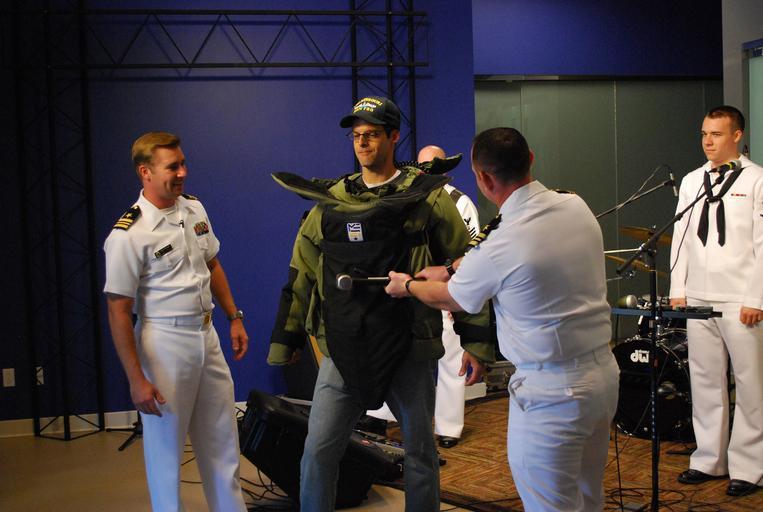 | Keywords: US Navy 100906-N-0869H-032 KTVI Fox-2 television personality Tim Ezell wears a bomb suit used by Explosive Ordnance Disposal Operational Support Unit Detachment 10.jpg en ST LOUIS Sept 6 2010 KTVI Fox-2 television personality Tim Ezell wears a bomb suit used by Explosive Ordnance Disposal Operational Support Unit Detachment 10 as Lt Cmdr Jarret Roth demonstrates the suit's durability by hitting him with a sledge hammer Navy personnel were guests on Ezell's morning show to promote St Louis Navy Week one of 19 Navy Weeks planned across America in 2010 Navy Weeks show Americans the investment they have made in their Navy and increase awareness in cities that do not have a significant Navy presence U S Navy photo by Senior Chief Mass Communication Specialist Susan Hammond/Released 2010-09-06 100906-N-0869H-032 Navy http //www navy mil/view_image asp id 91309 U S Navy photo by Senior Chief Mass Communication Specialist Susan Hammond PD-USGov-Military-Navy Bomb suits St Louis Navy Week |