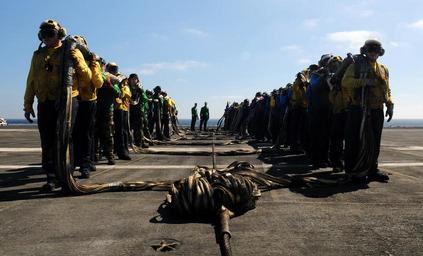 Keywords: US Navy 100914-N-0232G-102 Sailors carry an aircraft crash barricade during an emergency aircraft recovery drill aboard the aircraft carrier USS Ro.jpg en PACIFIC OCEAN Sept 14 2010 Sailors carry an aircraft crash barricade during an emergency aircraft recovery drill aboard the aircraft carrier USS Ronald Reagan CVN 76 The barricade is a last resort measure to safely land an aircraft that is unable to use its tail hook Ronald Reagan is underway in the Pacific Ocean conducting drills in preparation for its upcoming deployment U S Navy photo by Mass Communication Specialist 3rd Class Kevin Gray/Released 2010-09-14 100914-N-0232G-102 Navy http //www navy mil/view_image asp id 91742 U S Navy photo by Mass Communication Specialist 3rd Class Kevin Gray PD-USGov-Military-Navy Training on USS Ronald Reagan CVN-76 Barricades aircraft carrier |