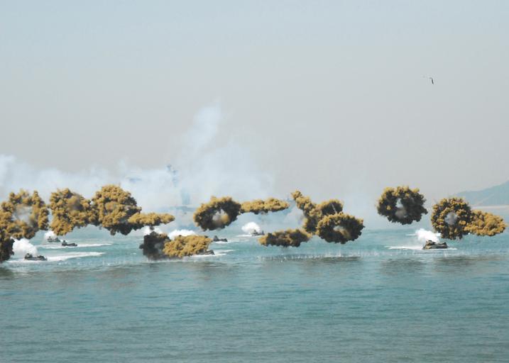 Keywords: US Navy 100915-N-4894D-110 Marines participate in the 60th anniversary of teh Incheon Landing Operation.jpg en INCHEON Republic of Korea Sept 15 2010 Amphibious assault vehicles from the 31st Marine Expeditionary Unit 31st MEU and the Republic of Korea ROK Marine Corps launch smoke grenades during a demonstration for the 60th anniversary of the Incheon Landing Operation The 31st MEU is embarked aboard the amphibious transport dock ship USS Denver LPD 9 completing a scheduled patrol in the western Pacific U S Navy photo by Lt Colby Drake/Released 2010-09-15 100915-N-4894D-110 Navy http //www navy mil/view_image asp id 91816 U S Navy photo by Lt Colby Drake PD-USGov-Military-Navy Aboard USS Denver LPD-9 Smoke bombs Amphibious Assault Vehicle 31st Marine Expeditionary Unit