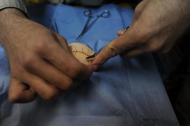 Keywords: US Navy 100925-N-6070S-049 A member of U.S. Coast Guard Tactical Law Enforcement, Det. 404 practices simple interrupted sutures during combat casua.jpg en GULF OF ADEN Sep 25 2010 A member of U S Coast Guard Tactical Law Enforcement Det 404 practices simple interrupted sutures during combat casualty care medical training aboard the guided-missile cruiser USS Princeton CG 59 Princeton is assigned to Combined Task Force CTF 151 a multinational task force established in January 2009 to conduct counter-piracy operations in and around the Gulf of Aden and Somali Basin U S Navy photo by Mass Communication Specialist 2nd Class Justin E Stumberg/Released 2010-09-25 100925-N-6070S-049 Navy http //www navy mil/view_image asp id 93647 U S Navy photo by Mass Communication Specialist 2nd Class Justin E Stumberg PD-USGov-Military-Navy Aboard USS Princeton CG-59 |