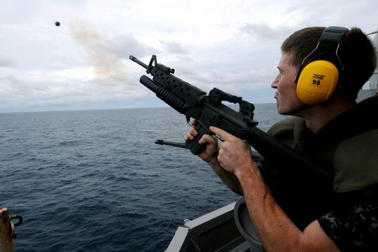 | Keywords: US Navy 100926-N-7680E-410 Gunner's Mate 3rd Class Andrey Murry, from Hickory, N.C., fires a grenade from an M203 grenade launcher during a live-fi.jpg en CARIBBEAN SEA Sept 26 2010 Gunner's Mate 3rd Class Andrey Murry from Hickory N C fires a grenade from an M203 grenade launcher during a live-fire exercise aboard the multi-purpose amphibious assault ship USS Iwo Jima LHD 7 U S Navy photo by Mass Communication Specialist 2nd Class Zane Ecklund/Released 2010-09-26 100926-N-7680E-410 Navy http //www navy mil/view_image asp id 92115 U S Navy photo by Mass Communication Specialist 2nd Class Zane Ecklund PD-USGov-Military-Navy Aboard USS Iwo Jima LHD-7 Gunner's Mate Shooting M16 rifle with M203 Males with M203 |