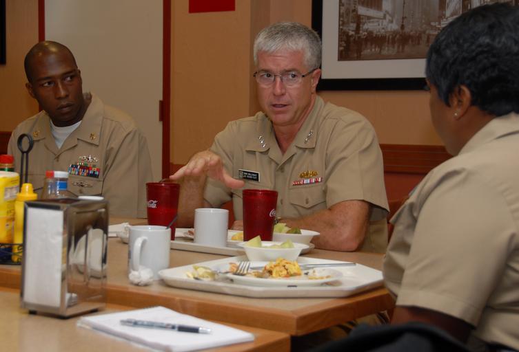 Keywords: US Navy 100930-N-6764G-046 Vice Adm. Daniel P. Holloway, commander of U.S. 2nd Fleet, middle, discusses leadership responsibilities with Chief Elec.jpg en NORFOLK Sept 30 2010 Vice Adm Daniel P Holloway commander of U S 2nd Fleet middle discusses leadership responsibilities with Chief Electronics Technician Bobbie Branch left and Master Chief Information Systems Technician Yvonne Kitchen during a breakfast with U S 2nd Fleet's new chief petty officers at the galley at Naval Station Norfolk U S Navy photo by Mass Communication Specialist 3rd Class Brian Goodwin/Released 2010-09-30 100930-N-6764G-046 Navy http //www navy mil/view_image asp id 92267 U S Navy photo by Mass Communication Specialist 3rd Class Brian Goodwin PD-USGov-Military-Navy Naval Station Norfolk Daniel P Holloway |