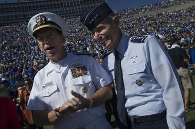Keywords: US Navy 101002-N-0696M-170 Chairman of the Joint Chiefs of Staff Adm. Mike Mullen, left, and U.S. Air Force Gen. Norton A. Schwartz meet on the Fal.jpg en COLORADO SPRINGS Colo Oct 2 2010 Chairman of the Joint Chiefs of Staff Adm Mike Mullen left and U S Air Force Gen Norton A Schwartz chief of staff U S Air Force meet on the Falcon Stadium field prior to kickoff of the U S Air Force Academy Falcons versus the U S Naval Academy Midshipmen football game in Colorado Springs Colo The Falcons defeated the Midshipmen 14-6 U S Navy photo by Mass Communication Specialist 1st Class Chad J McNeeley/Released 2010-10-02 101002-N-0696M-170 Navy http //www navy mil/view_image asp id 92415 U S Navy photo by Mass Communication Specialist 1st Class Chad J McNeeley PD-USGov-Military-Navy Images from US Navy location COLORADO SPRINGS Colo Michael G Mullen in 2010 |