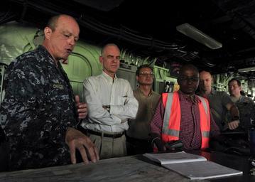 Keywords: US Navy 101031-N-1531D-044 Capt. Thomas Chassee, commanding officer of the multi-purpose amphibious assault ship USS Iwo Jima (LHD 7), gives a tour.jpg en CARIBBEAN SEA Oct 31 2010 Capt Thomas Chassee commanding officer of the multi-purpose amphibious assault ship USS Iwo Jima LHD 7 gives a tour of the ship's bridge to Dutch Ambassador to Suriname Aart Jacobi center left and Brazilian Ambassador to Suriname Luis Machado The assigned medical and engineering staff embarked aboard Iwo Jima are working with partner nations to provide medical dental veterinary and engineering assistance in eight countries U S Navy photo by Mass Communication Specialist 2nd Class Jonathen E Davis/Released 2010-10-31 101031-N-1531D-044 Navy http //www navy mil/view_image asp id 93503 U S Navy photo by Mass Communication Specialist 2nd Class Jonathen E Davis PD-USGov-Military-Navy Aboard USS Iwo Jima LHD-7 Aart Jacobi José Luiz Machado e Costa |