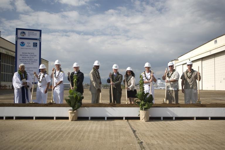 | Keywords: US Navy 101207-O-7784M-002 Dirt is turned at the site of the new Pacific Regional Center during a ceremony at Ford Island, Joint Base Pearl Harbor.jpg en PEARL HARBOR Dec 7 2010 Reverend David Kaupu left assists Capt John Coronado commanding officer of Naval Facilities Engineering Command Hawaii; Capt Richard Kitchens commander of Joint Base Pearl Harbor-Hickam; Bill Broglie chief administrative officer of National Oceanic and Atmospheric Administration NOAA ; Dr Larry Robinson Asst secretary of Commerce for Conservation Management NOAA; Mr Daniel Walsh owner and ceo of Walsh Construction; Jennifer Sabas chief of staff representing U S Senator Daniel Inouye; Vice Adm Michael Vitale commander of Navy Installations Command; Michael Whelan president of Walsh Construction and David Marchiori vice president of Walsh Construction lift their gold shovels to turn dirt at the site of the new Pacific Regional Center during a ceremony at Ford Island Joint Base Pearl Harbor-Hickam The expected completion date is October 2012 U S Navy photo by Sarah Mueller/Released 2010-12-07 101207-O-7784M-002 Navy http //www navy mil/view_image asp id 95181 U S Navy photo by Sarah Mueller PD-USGov-Military-Navy 69th anniversary of Pearl Harbor attacks Michael C Vitale |