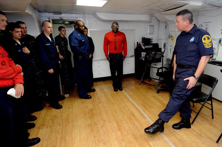 Keywords: US Navy 101208-N-5361G-075 Virginia State Trooper Gregory Dukes demonstrates a field sobriety test to Sailors and Marines aboard USS Harry S. Truma.jpg en MEDITERRAINAN SEA Dec 8 2010 Virginia State Trooper Gregory Dukes demonstrates a field sobriety test to Sailors and Marines aboard the aircraft carrier USS Harry S Truman CVN 75 during a DUI fair aboard the ship The DUI fair is part of a re-deployment education program for the crew with topics covering DUI awareness and prevention family reunion suicide and domestic violence awareness and prevention among others The Harry S Truman Carrier Strike Group is deployed supporting maritime security operations and theater security cooperation efforts in the U S 5th and 6th Fleet areas of responsibility U S Navy photo by Mass Communication Specialist 3rd Class David Giorda/Released 2010-12-08 101208-N-5361G-075 Navy http //www navy mil/view_image asp id 95176 U S Navy photo by Mass Communication Specialist 3rd Class David Giorda PD-USGov-Military-Navy Aboard USS Harry S Truman CVN-75 Field sobriety tests |