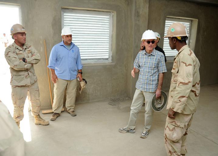 | Keywords: US Navy 110104-N-4440L-104 U.S. Ambassador to the Republic of Djibouti James C. Swan and Builder 2nd Class Jermaine Blake discuss building details.jpg en KONTALI Djibouti Jan 4 2011 U S Ambassador to the Republic of Djibouti James C Swan and Builder 2nd Class Jermaine Blake project crew leader assigned to Naval Mobile Construction Battalion NMCB 74 Detail Horn of Africa discuss building details at the construction site of a schoolhouse in Kontali Djibouti U S Navy photo by Mass Communication Specialist 2nd Class Michael Lindsey/Released 2011-01-04 110104-N-4440L-104 Navy http //www navy mil/view_image asp id 96682 U S Navy photo by Mass Communication Specialist 2nd Class Michael Lindsey PD-USGov-Military-Navy Images from US Navy location KONTALI Djibouti James C Swan Builder United States Navy Taken with Nikon D700 |